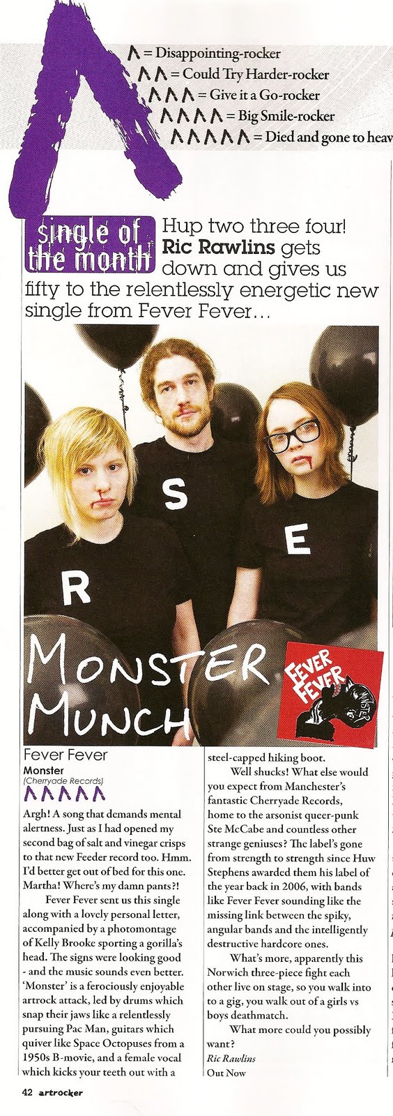 ![]() Fever Fever headline wombatwombat's Peel Day on Friday 08 October 2010 @ NACPlease give us the low-down on your new EP... Ahh oui. The Bloodless EP. It's what we have been working towards for two years as a hot hot threesome. So it has to be the best thing we can possibly make with those two years behind us, and it damn well is. It's nice and loud, nice and heavy. But there's a softer side to it too, which might surprise a few people. We have refined all elements of the band, and dare I say, matured!? There are tales of riots, un-riots, butchery and control freaks. ...and how is tonight's EP launch gig going to be special? We always like to push the boat out on our release nights... so possibly something involving Rosie on a hovercraft. Plus it's the first time ever we will be headlining Norwich Arts Centre so we have got to step up our game. I think we have only just got our live sound to be REALLY how we want it to be, so the main thing is to play well and sweep people off their feet. To what extent has your previous release, Monster, being an Artrocker single of the month made a difference to your profile and sense of purpose? Well Norwich is a bit of a bubble, so people will often say they like our music whatever we make, not that we don't appreciate it – we love Norwich! But for Artrocker to recognise and like us, that means a lot, and it is a massive confidence boost. It kind of puts you on a roll, so you're like, "OK, we've done this now... what next!" So now we're hungry motherfuckers, searching for our next piece of gratification.
